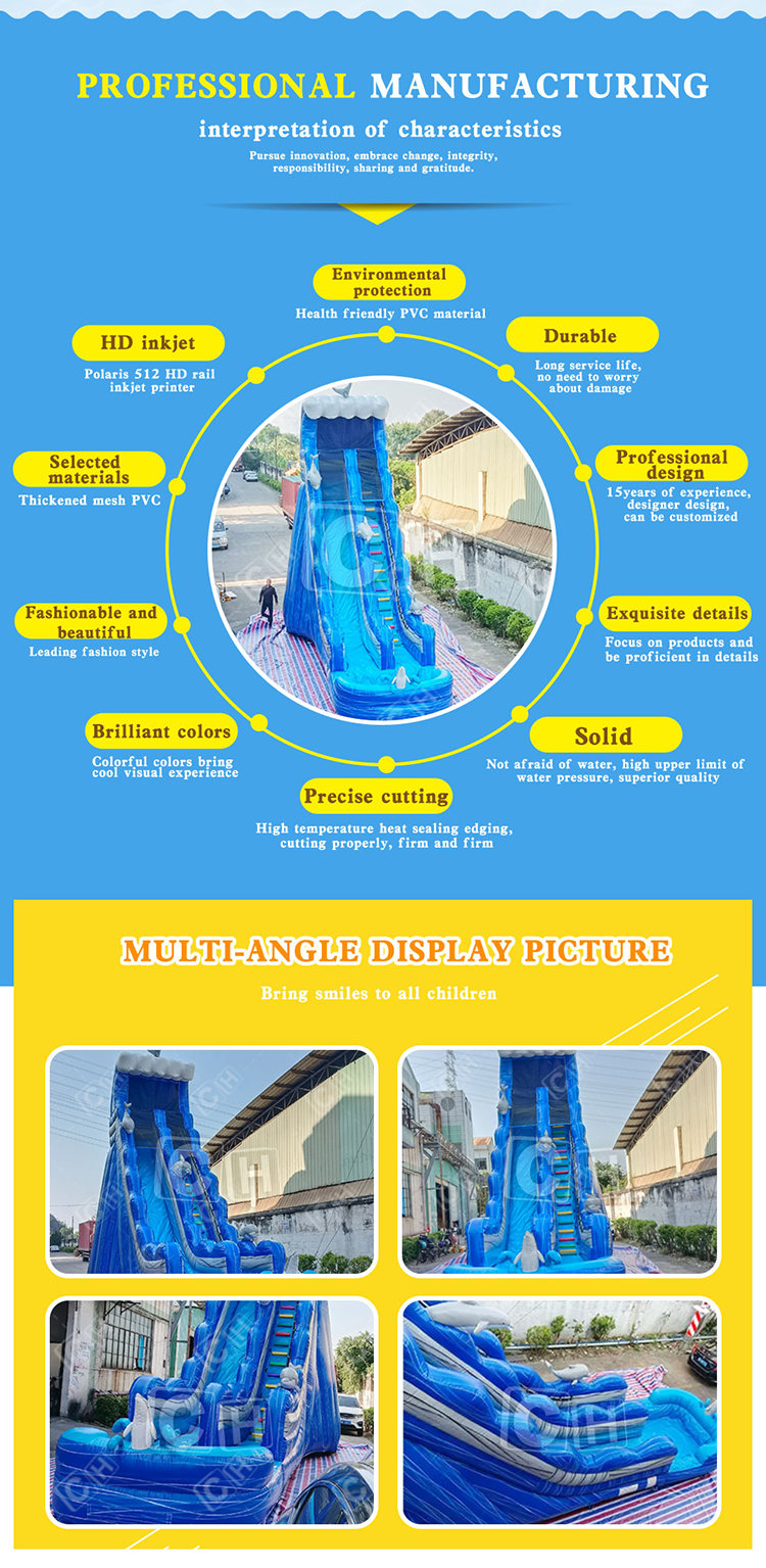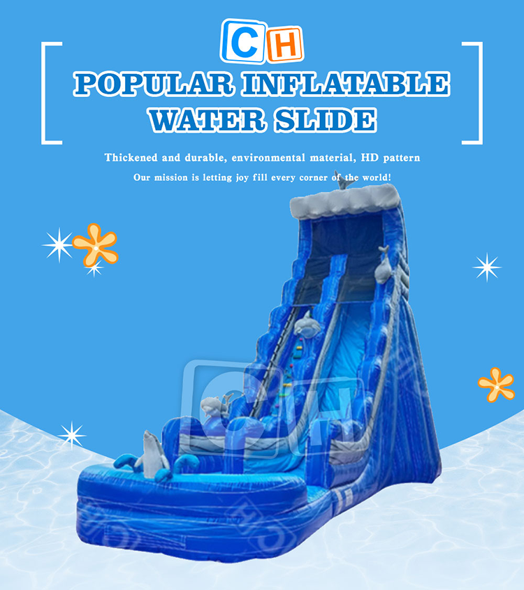| CH Hurricane Color Wave Dolphin Giant Inflatable Water Slide With Pool For Kids And Adults |